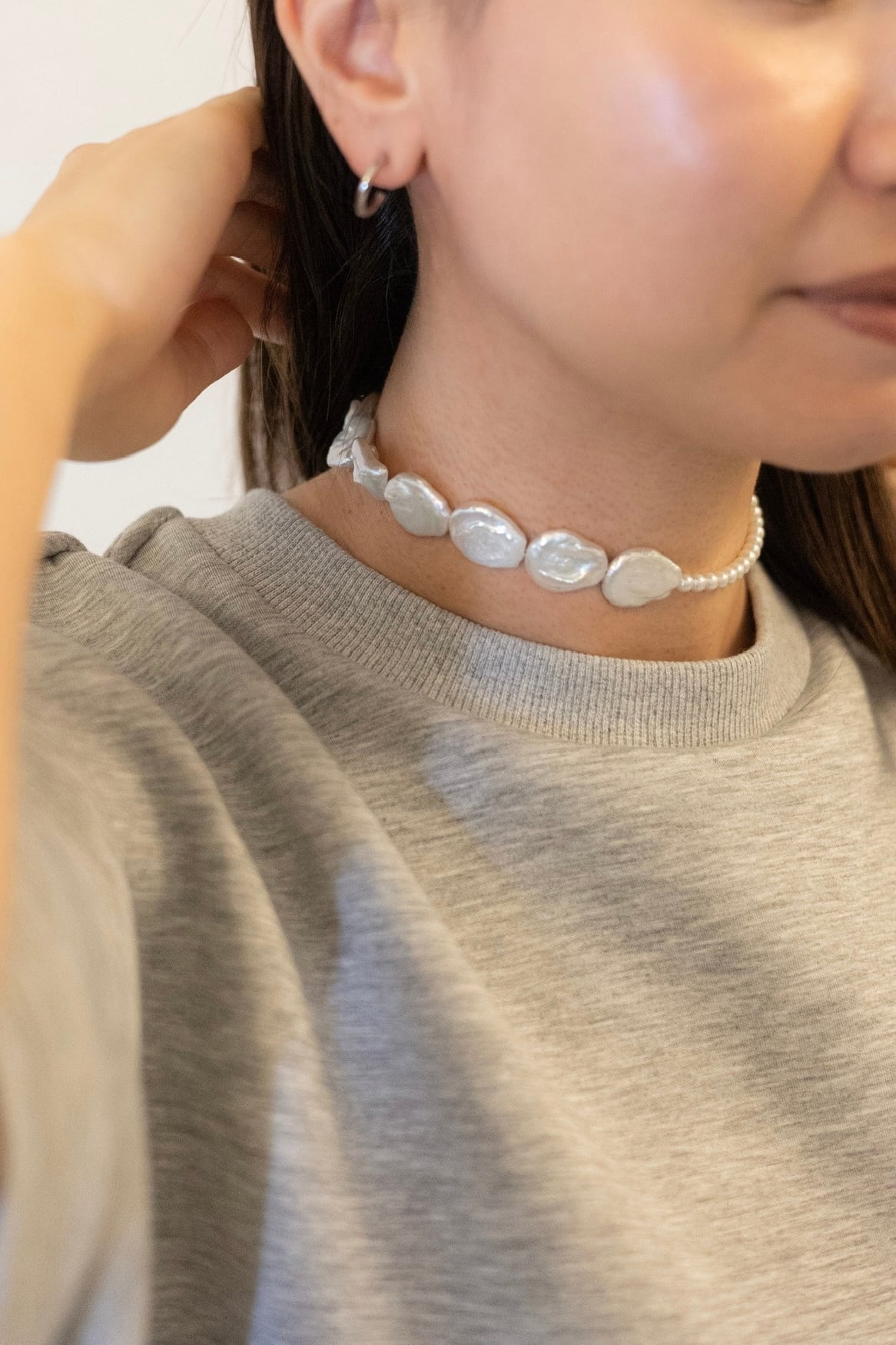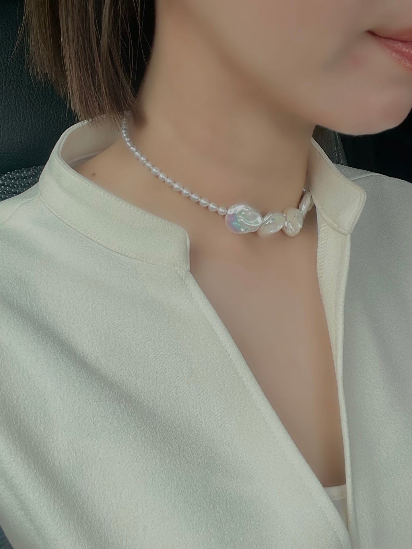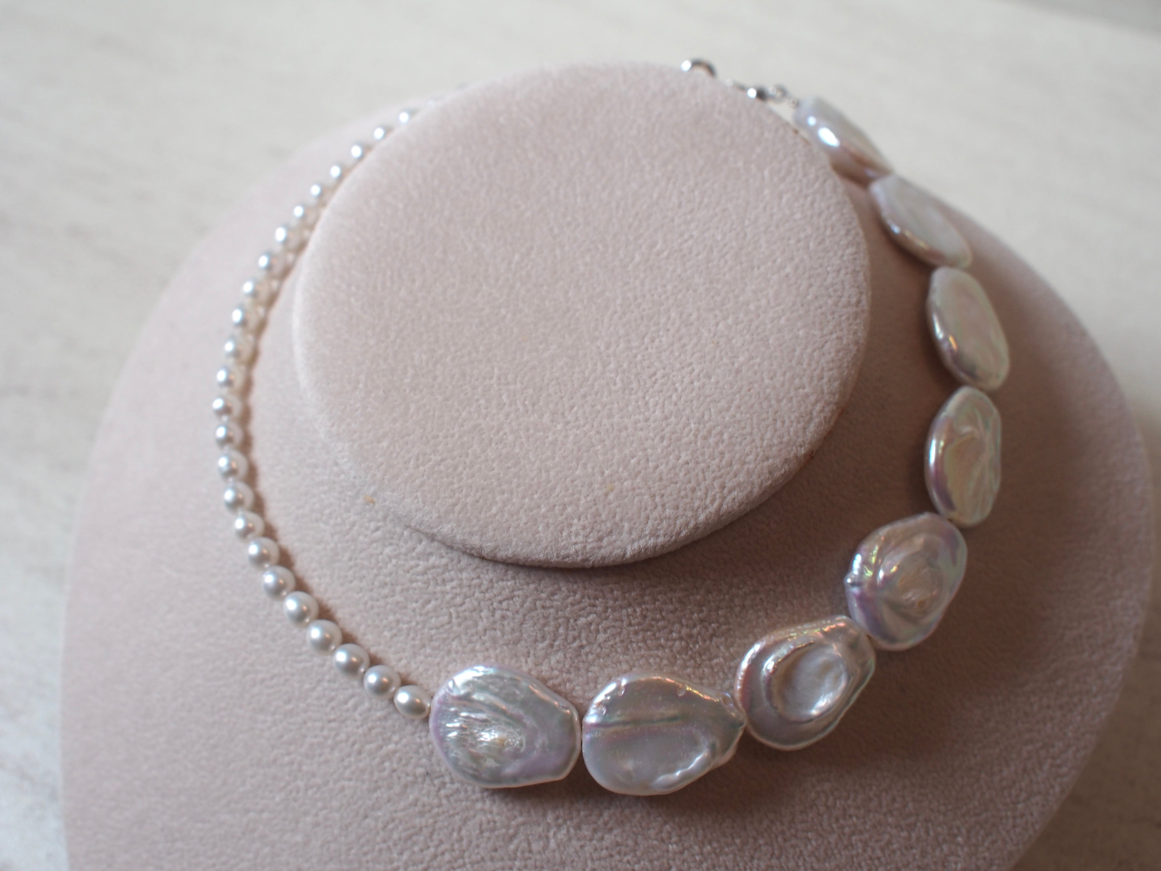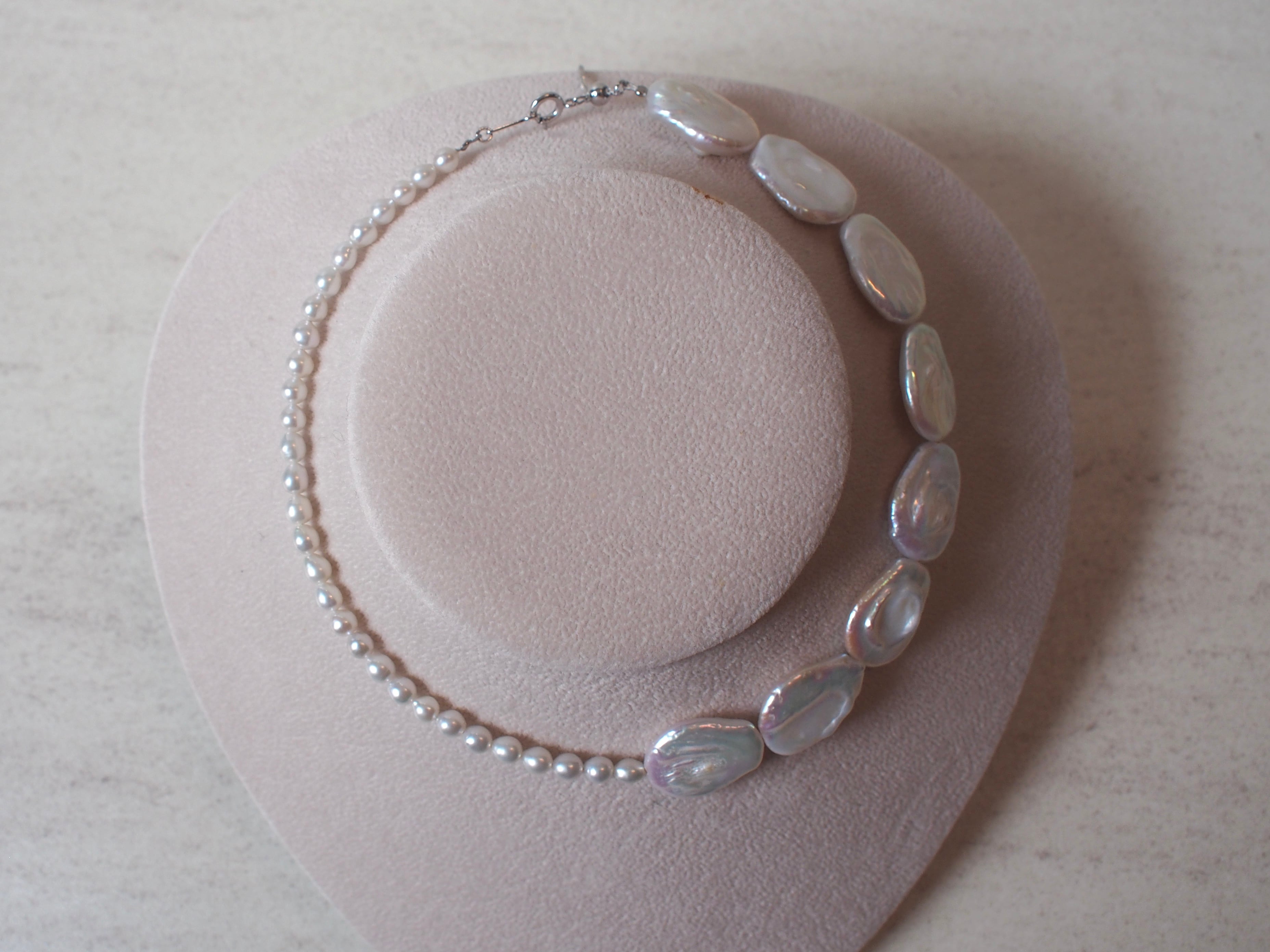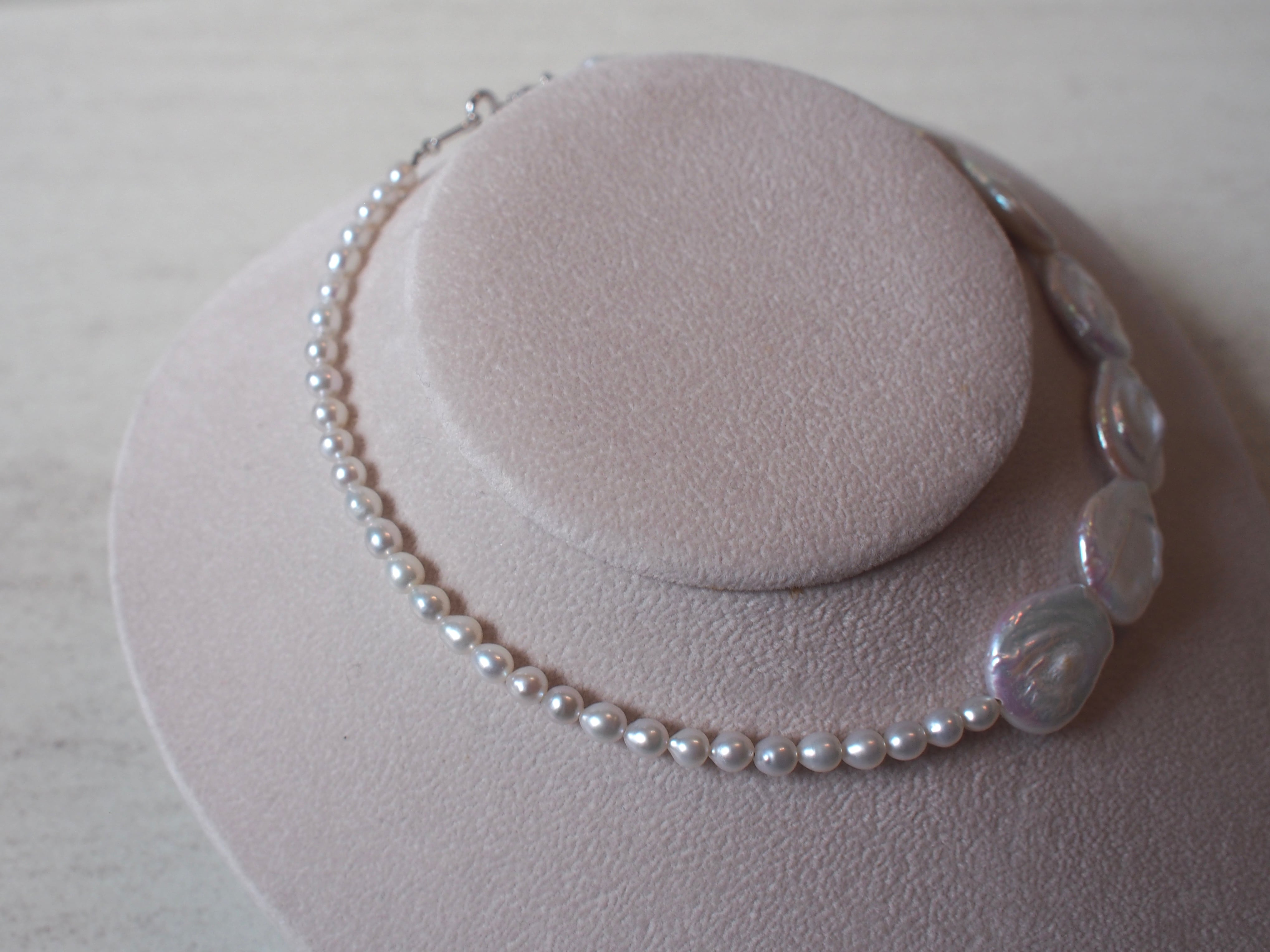 2種類の淡水真珠を使用したデザインネックレス。