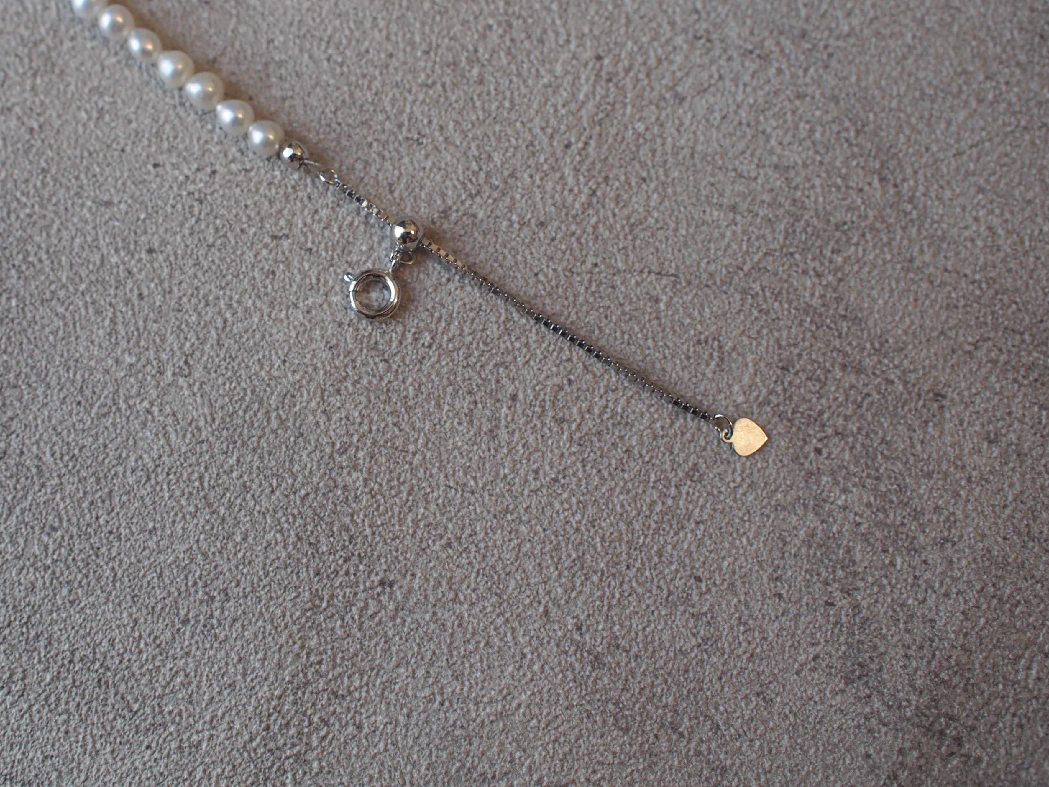 スライド留め具が緩く着用中にズレないよう留め具パーツの中にシリコンが入っておりまして、チェーンと密着する作りとなっております。