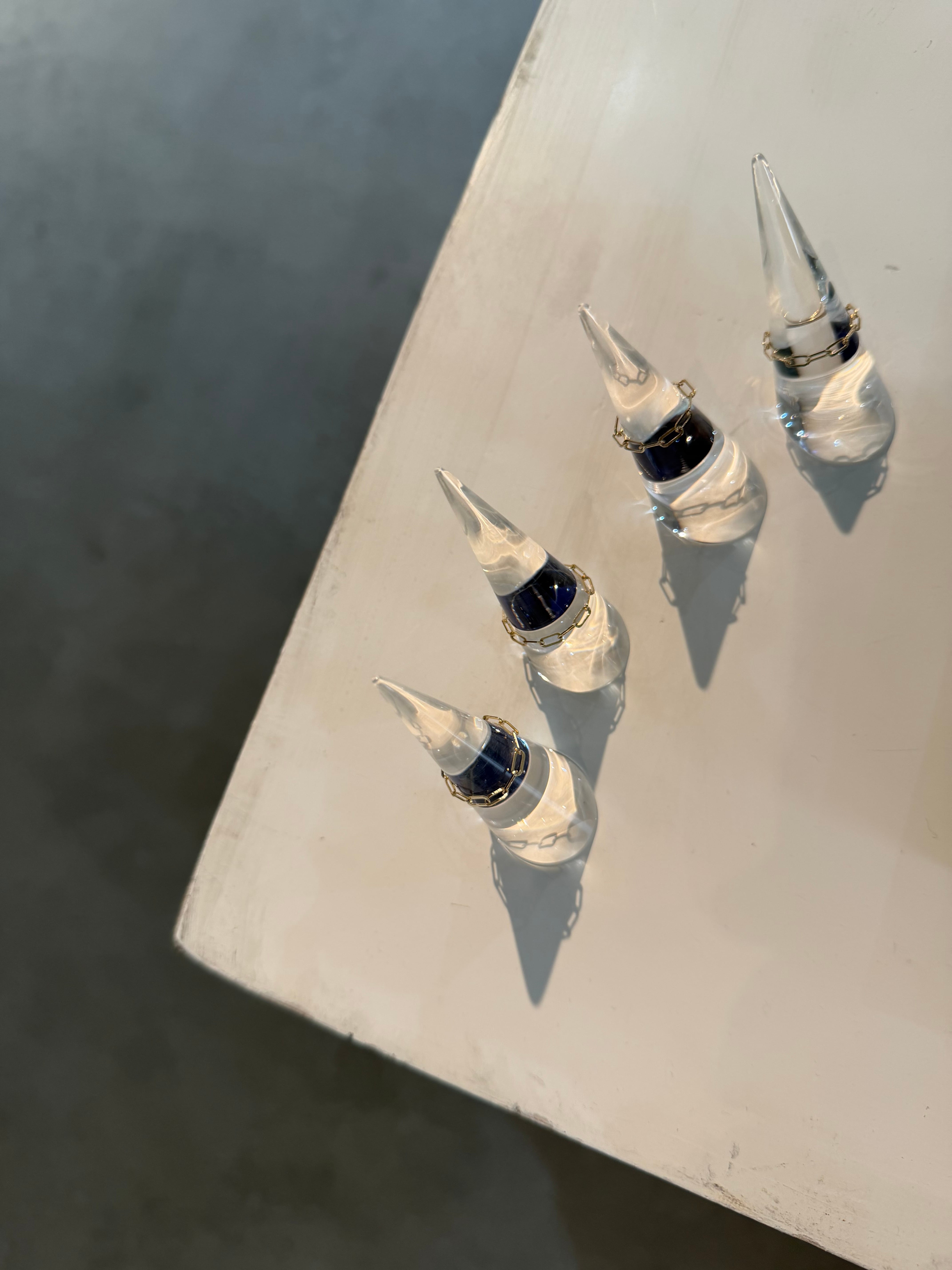 シンプルにチェーンリングのみでも存在感ありますが、重ね付けでたくさんのジュエリーコーデをお楽しみいただきたいです。