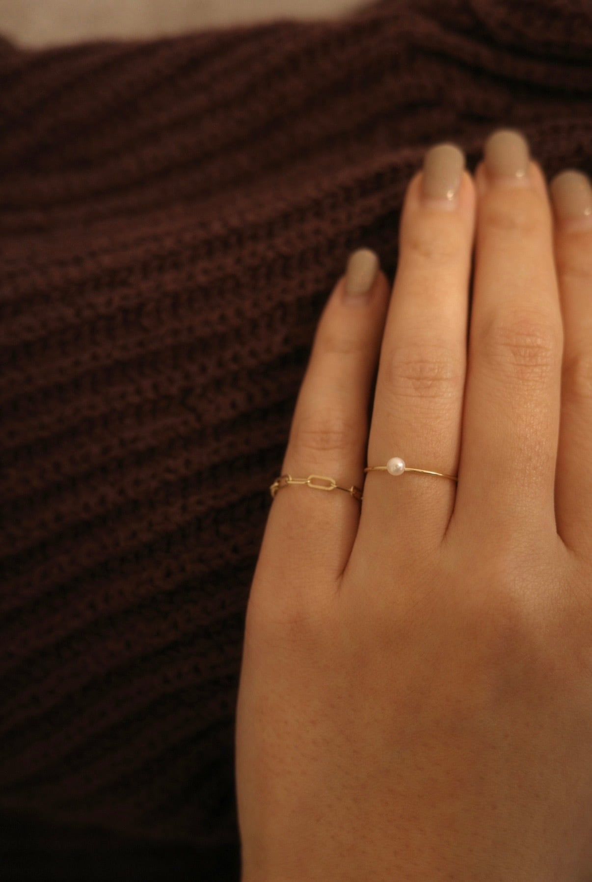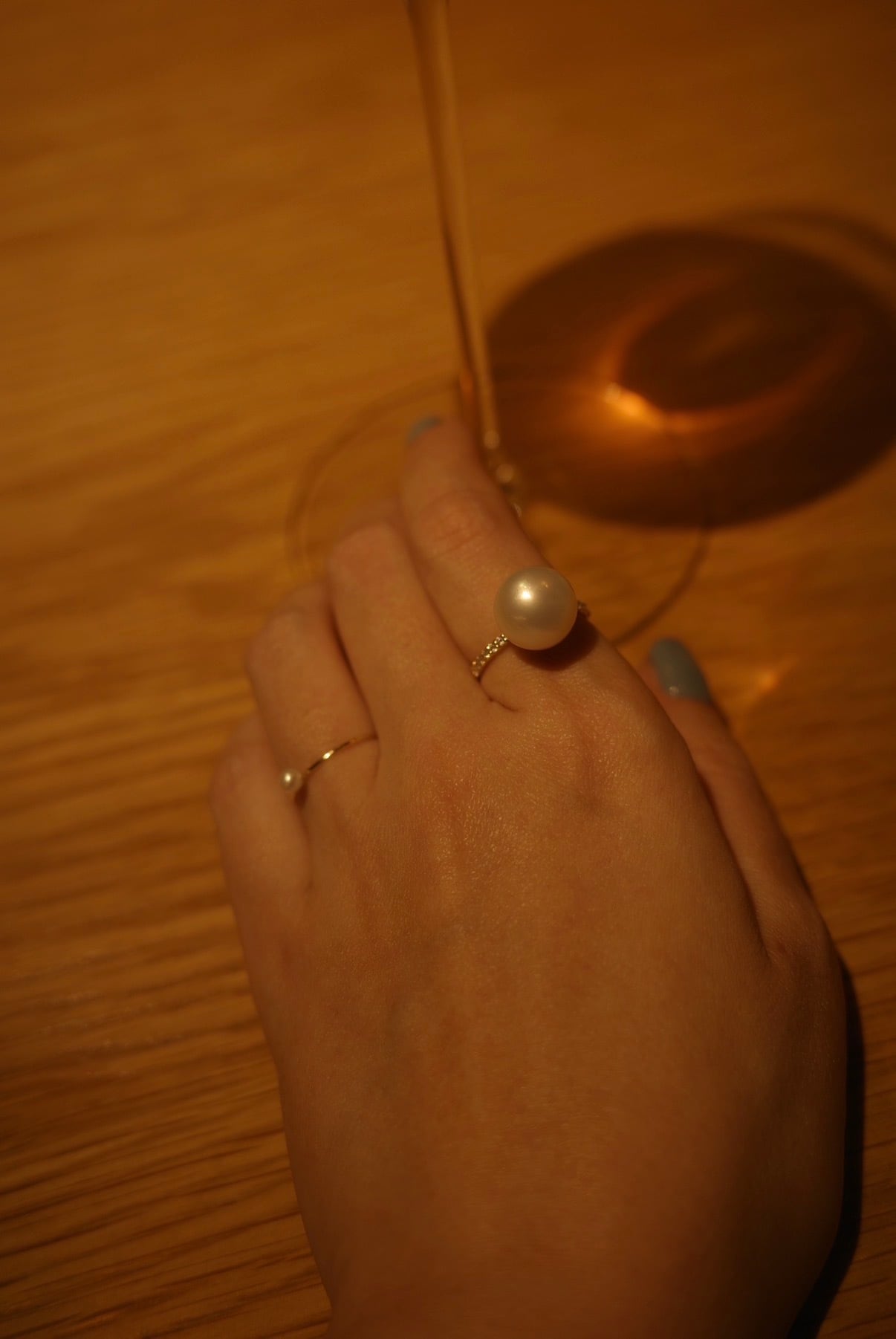 華奢でシンプルなベビーパールリング。